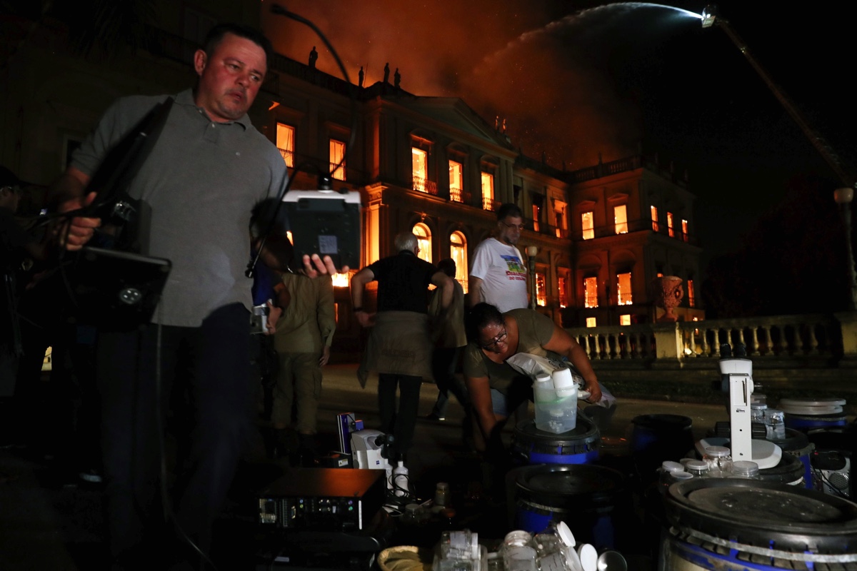 Um incêndio de grandes proporções destrói o acervo do Museu Nacional no Rio de Janeiro, no Brasil.